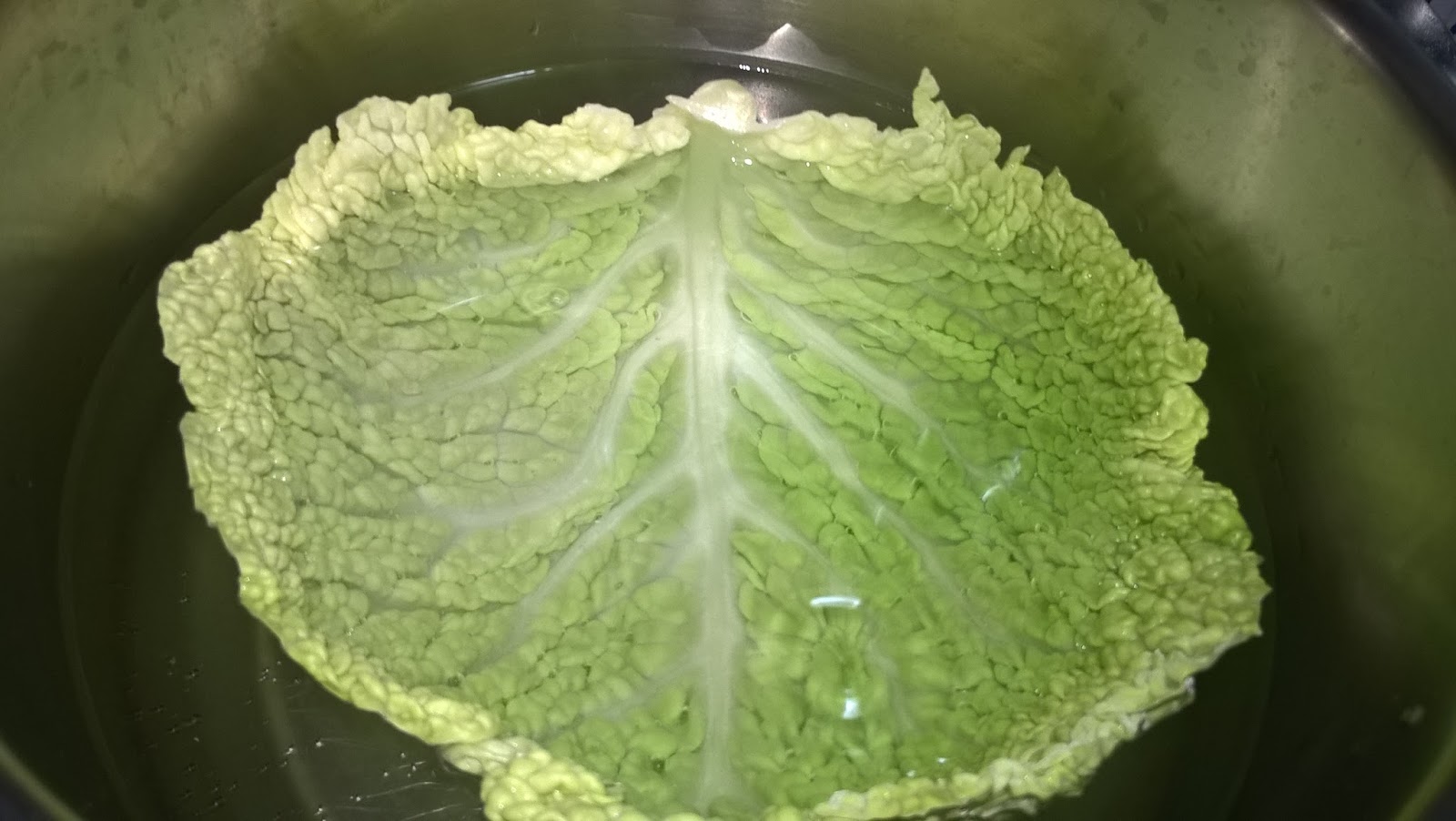 Intanto sbollentate le foglie di verza per due minuti per ammorbidirle un po’.