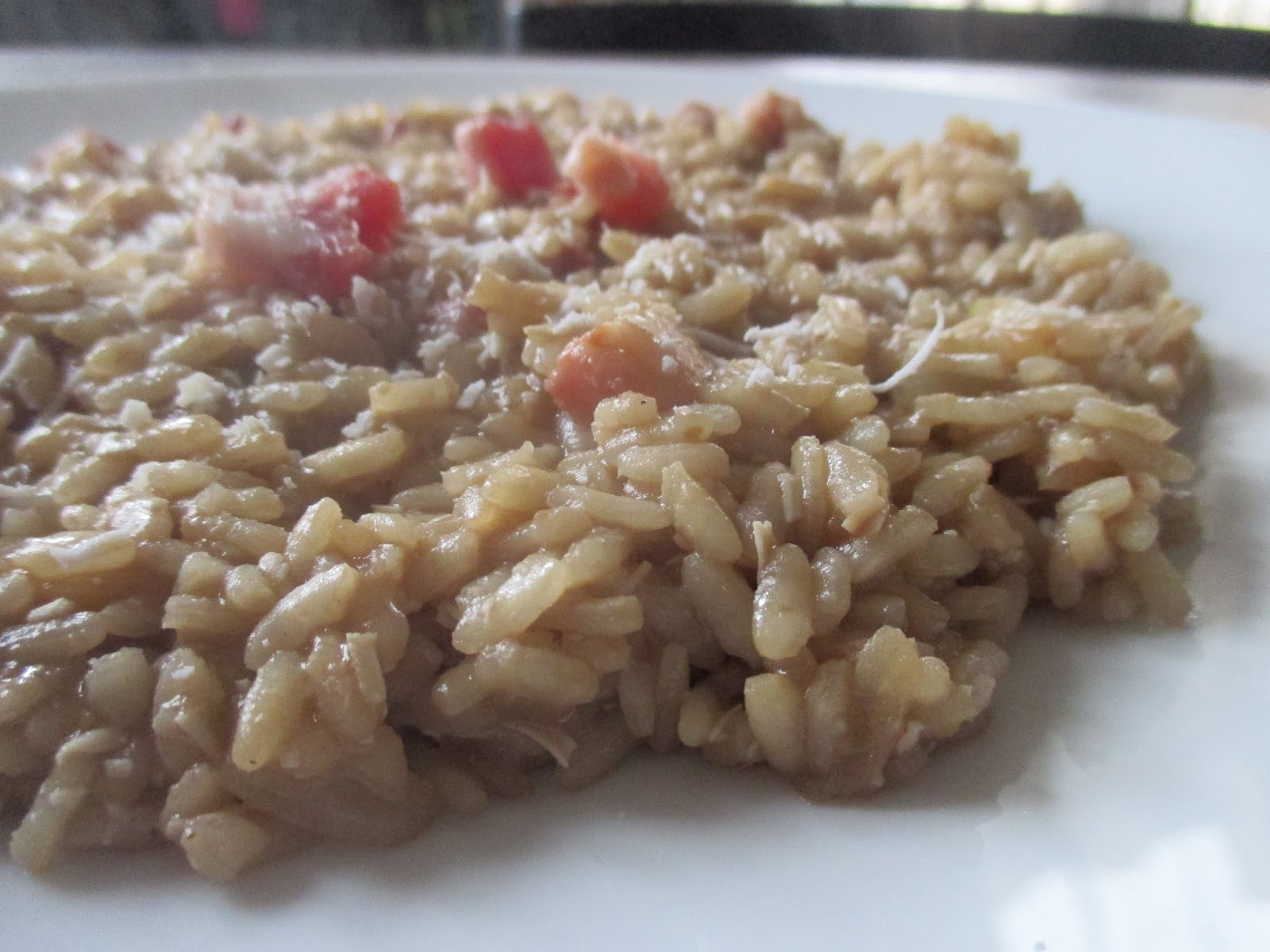 Un risotto dal sapore un pò particolare che può andare bene ai “cultori” della birra scura in quanto una particolare nota amara, ma a mio avviso molto gradevole, viene rilasciata subito dopo la masticazione. La pancetta affumicata altro non fa che aumentare l’aroma.