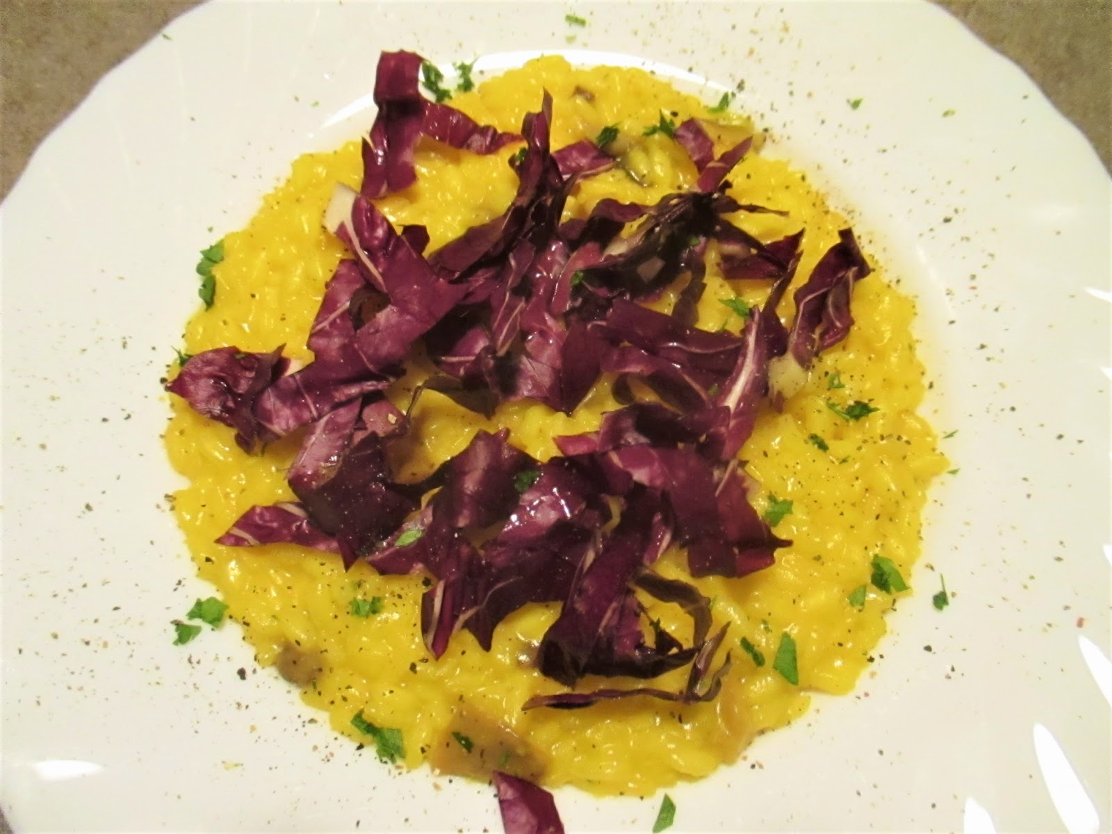 RISOTTO ZAFFERANO, FUNGHI E RADICCHIO