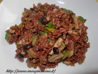 140 gr riso thai rosso integrale, 1 zucchina, 1 mazzetto di funghi pioppini, sale integrale, olio extravergine d’oliva.