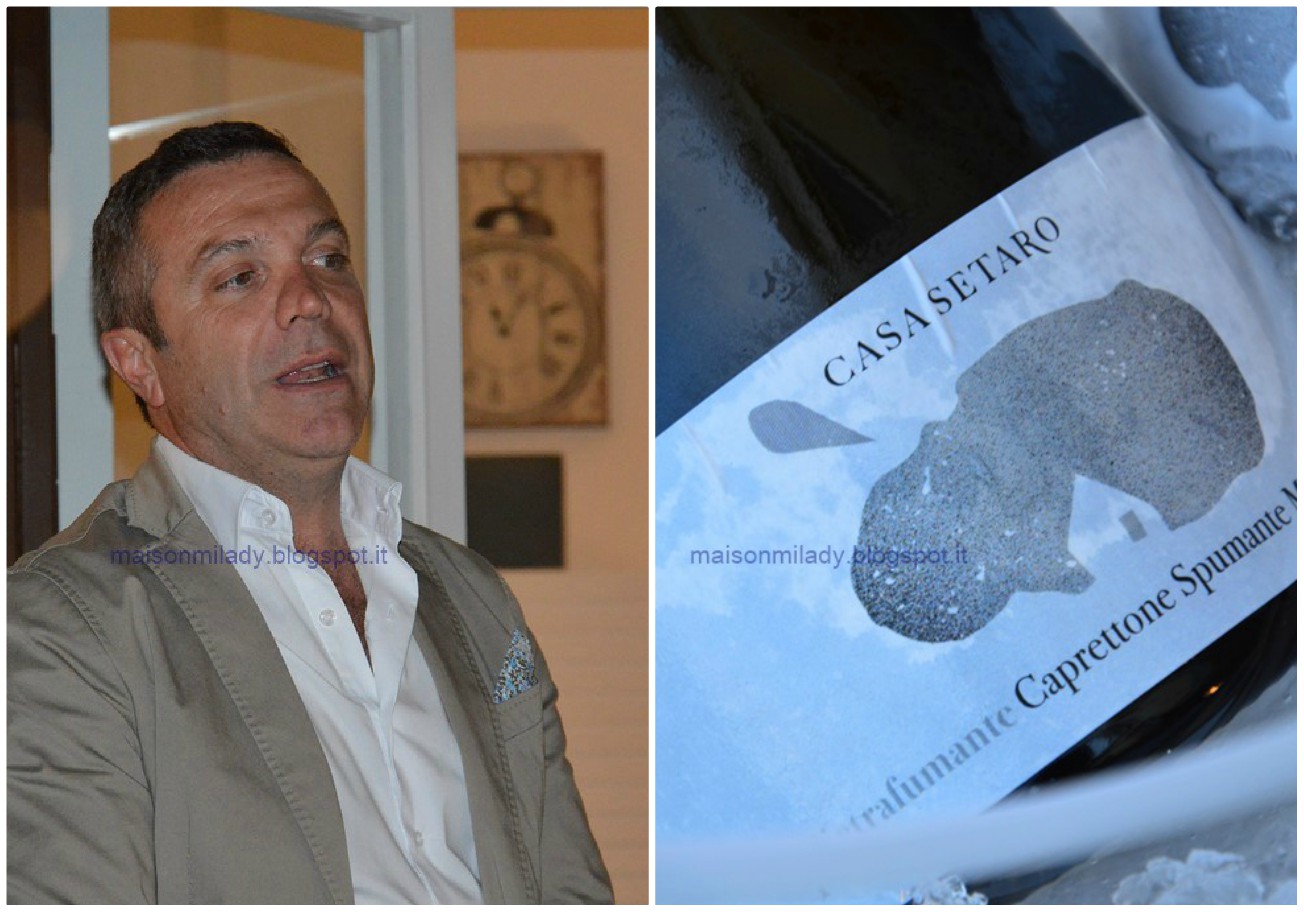 I vini di Casa Setaro, presentati dal produttore Massimo Setaro, hanno accompagnato la cena, a cominciare dal Caprettone, uno Spumante metodo classico millesimato, che ha accompagnato l’aperitivo e l’ antipasto, ma sarebbe stato gradevole per tutta la cena, seguito dal Munazei Lacryma Christi del Vesuvio Doc 2017 per i primi e Munazei Lacryma Christi del Vesuvio Doc 2017, per il secondo.