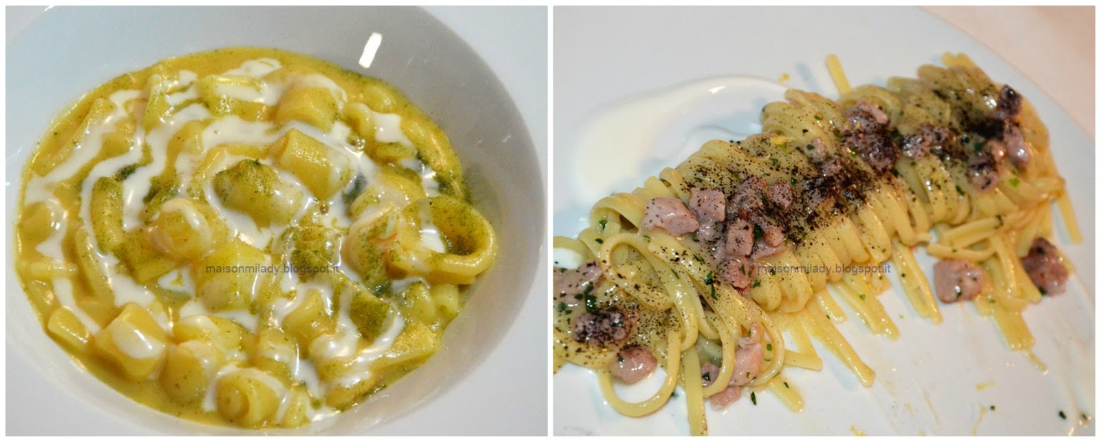 Pasta mischiata, patate e mazzancolle con cremoso di provola affumicata