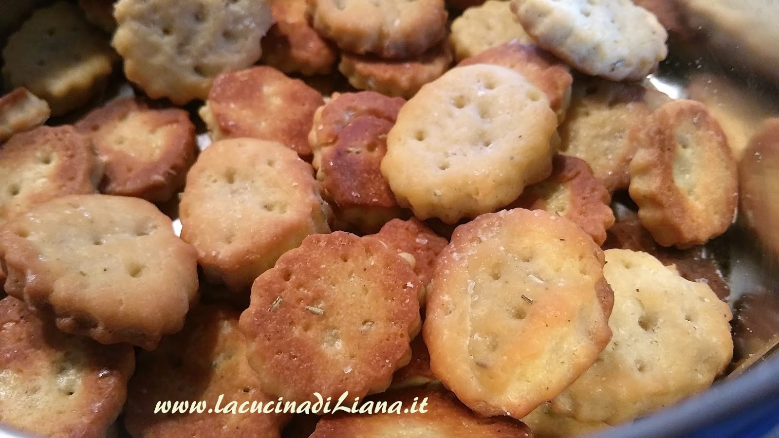 Fondere del burro con cui spennellare i crackers ancora caldi, e spolverizzarli con un pizzico di sale.