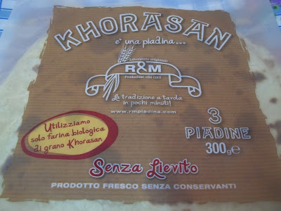Piadina Khorasan senza lievito e conservanti ogni confezione contiene 3 piadine, con farina khorasan biologica al 65 % , facilmente digeribile, buona gustosa e leggera!