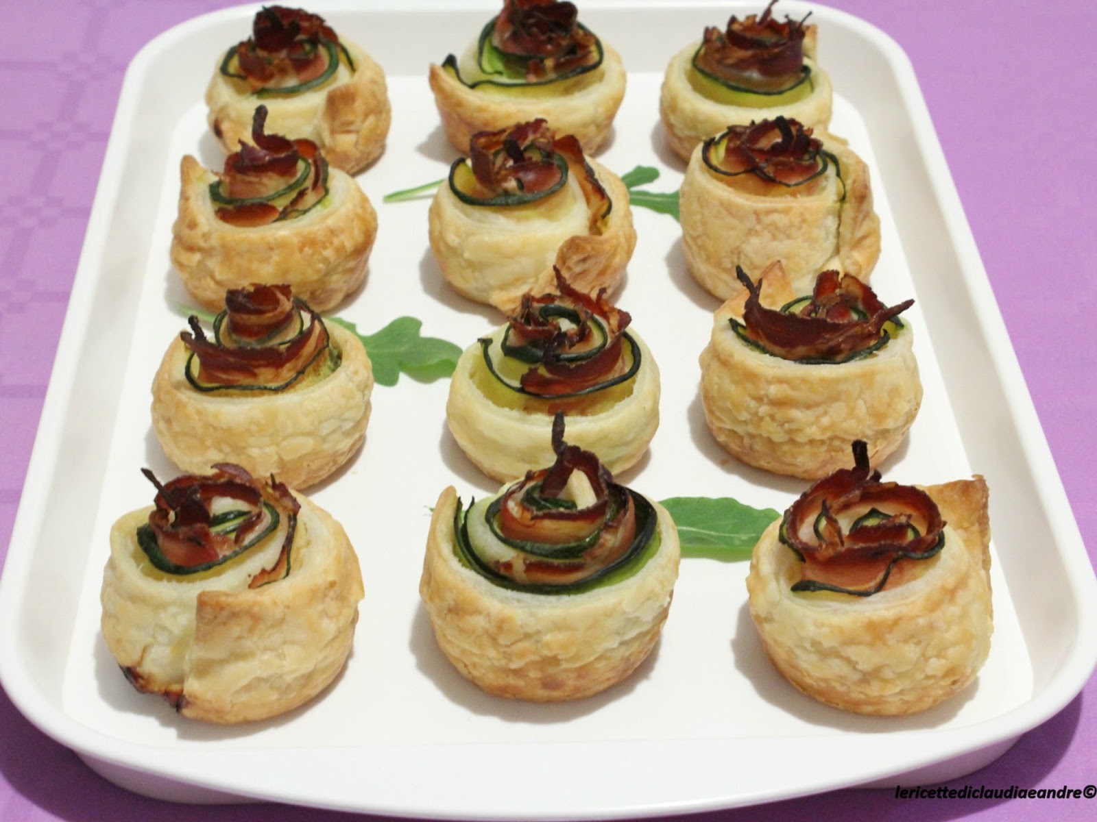 Roselline di sfoglia con speck e zucchine