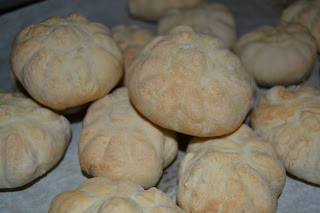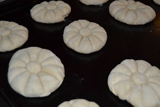 Per dare la forma alle mie rosette ho utilizzato il taglia mela, quell’attrezzo che serve a separare gli spicchi e il torsolo: non si deve premere fino in fondo, ma abbastanza da lasciare una netta incisione alle palline d’impasto per creare le nostre rosette.