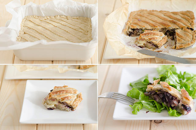 In questa ricetta la pasta sfoglia fa da coperchio, le patate (grattugiate crude) fanno da fondo.