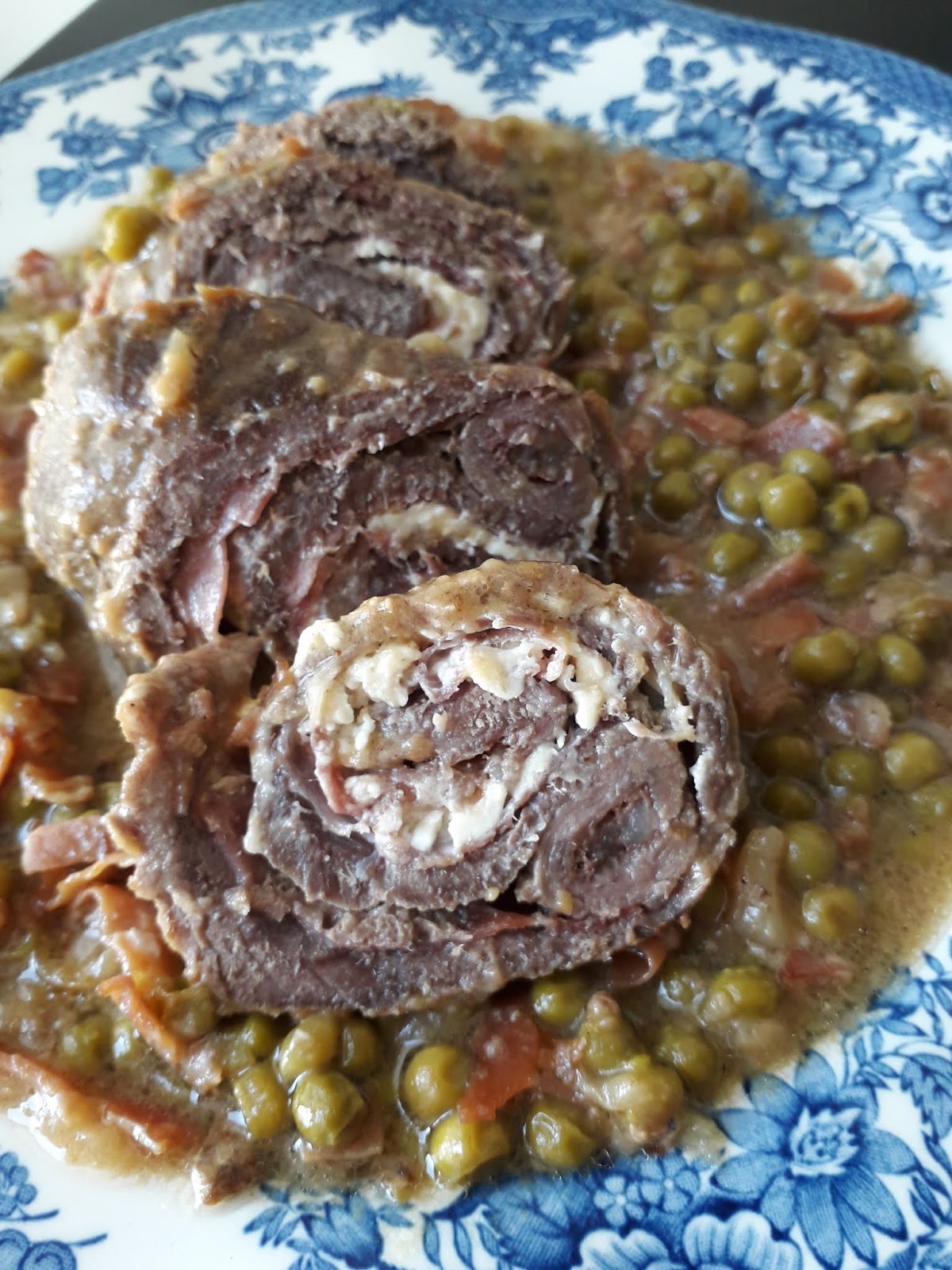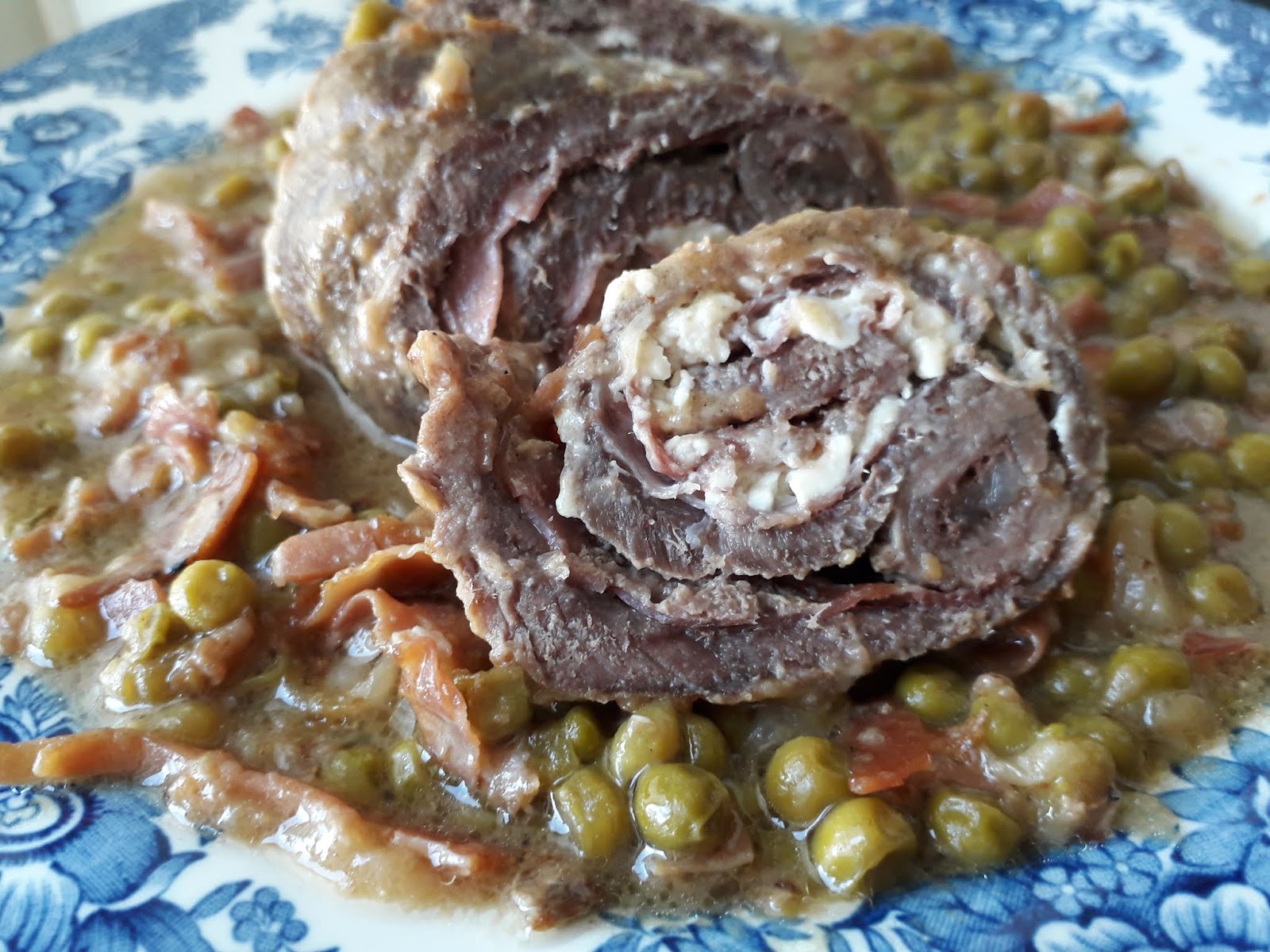 Serviamo eliminando stecchini e tagliamo a fette,guarnendo con i piselli!!