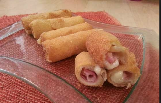 Ingredienti 1 pacco di pancarré bianco morbido, 100 gr circa di prosciutto cotto a fettine, formaggio a fette, 2 uova, pane grattugiato qb, sale, olio per friggere. Preparazione assottigliate le fette di pancarré aiutandovi con il mattarello e dividetele a metà. Adagiate sopra a ogni metà, una fetta di prosciutto e una fetta di formaggio. Arrotolate le fette di pancarré su se stesse, formando dei rotolini. Passate ogni rotolino prima nell’uovo sbattuto con del sale, poi nel pane grattugiato. Friggete i rotolini in olio bollente fino a doratura.