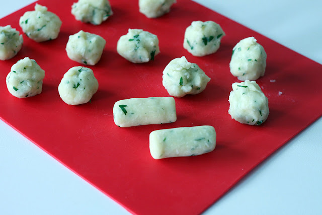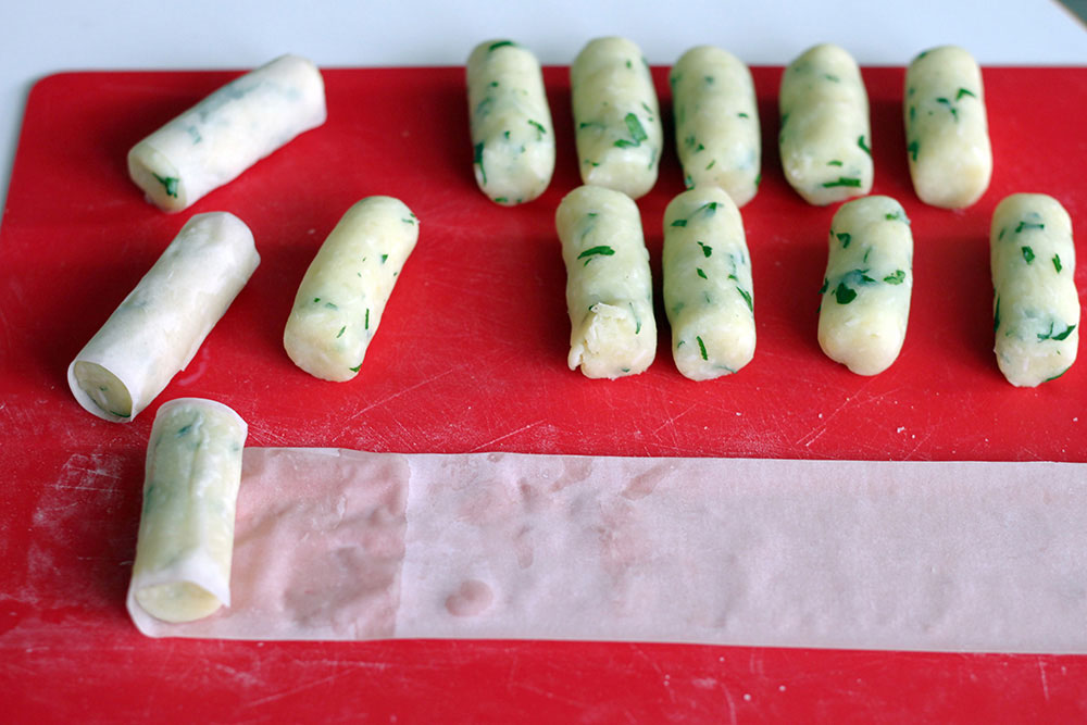 Formare 14 palline di 30 g l’una, quindi lavorate le palline di patate in modo che assumano la forma di cilindretti.