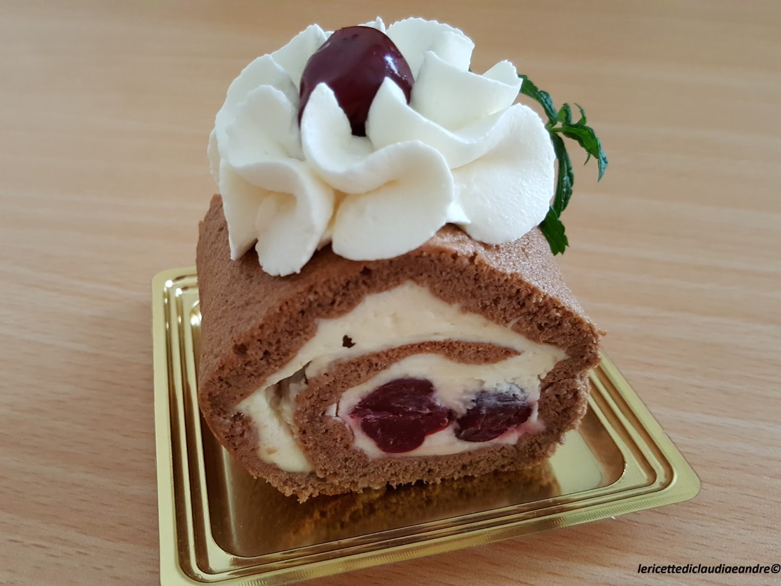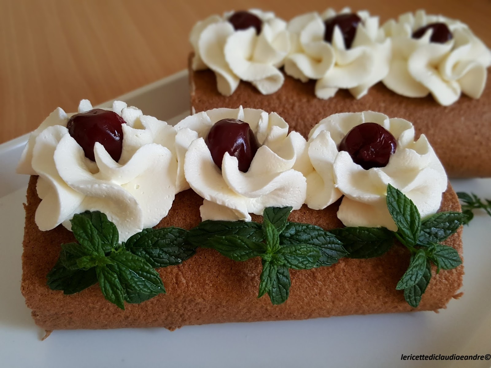 Rotolo al ciobar con crema al cioccolato bianco e amarene