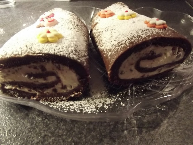 Negli scorsi giorni ho visto questa ricetta molto interessante girare su facebook, link di riferimento e’ http://blog.giallozafferano.it/statusmamma/rotolo-al-cioccolato-senza-cottura/ e cosi’ ho deciso di provarla con alcuni cambiamenti, pero’.
