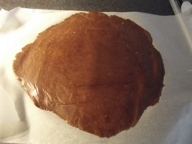 Preparate dapprima la base biscottata del dolce frullando i biscotti e poi aggiungendovi il cacao, lo zucchero e il latte. Amalgamate bene fino ad ottenere un composto omogeneo poi richiudetelo nella carta velina e mettetelo in freezer per circa 30 minuti.
