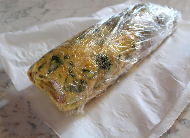 Arrotolare la frittata, sigillarla con la pellicola per alimenti e riporla in frigorifero per almeno un paio d’ore.