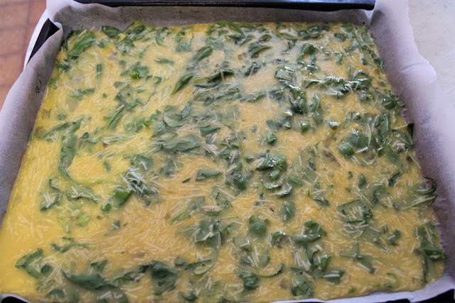 A cottura capovolgere la teglia: quando la frittata è tiepida staccare delicatamente la carta forno e fare raffreddare completamente.