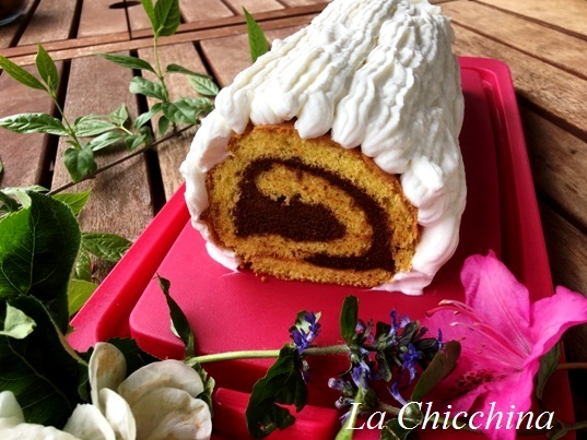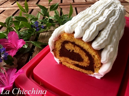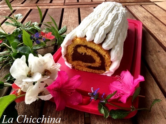 Mah… il nome forse non sarà troppo convincente, ma questo è: un rotolo di pasta biscotto farcito, cremoso e, come se non bastasse, ricoperto di panna.
