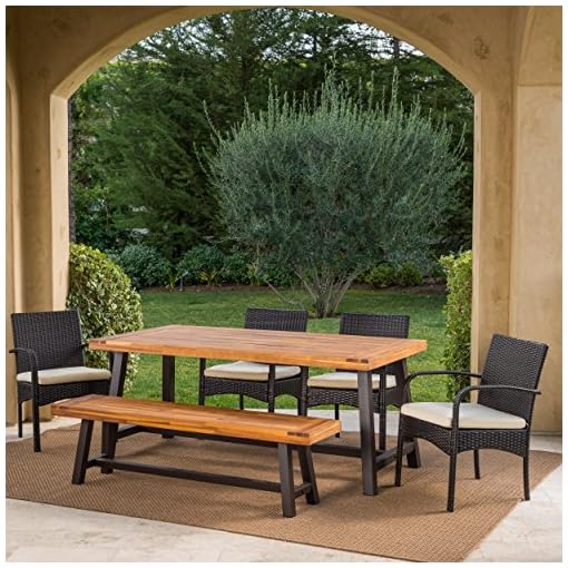 Christopher Knight Home 301540 Beryl Outdoor 6 Piece Rustic Metal Iron And Sandblast Finished Acacia Wood D Multicolor