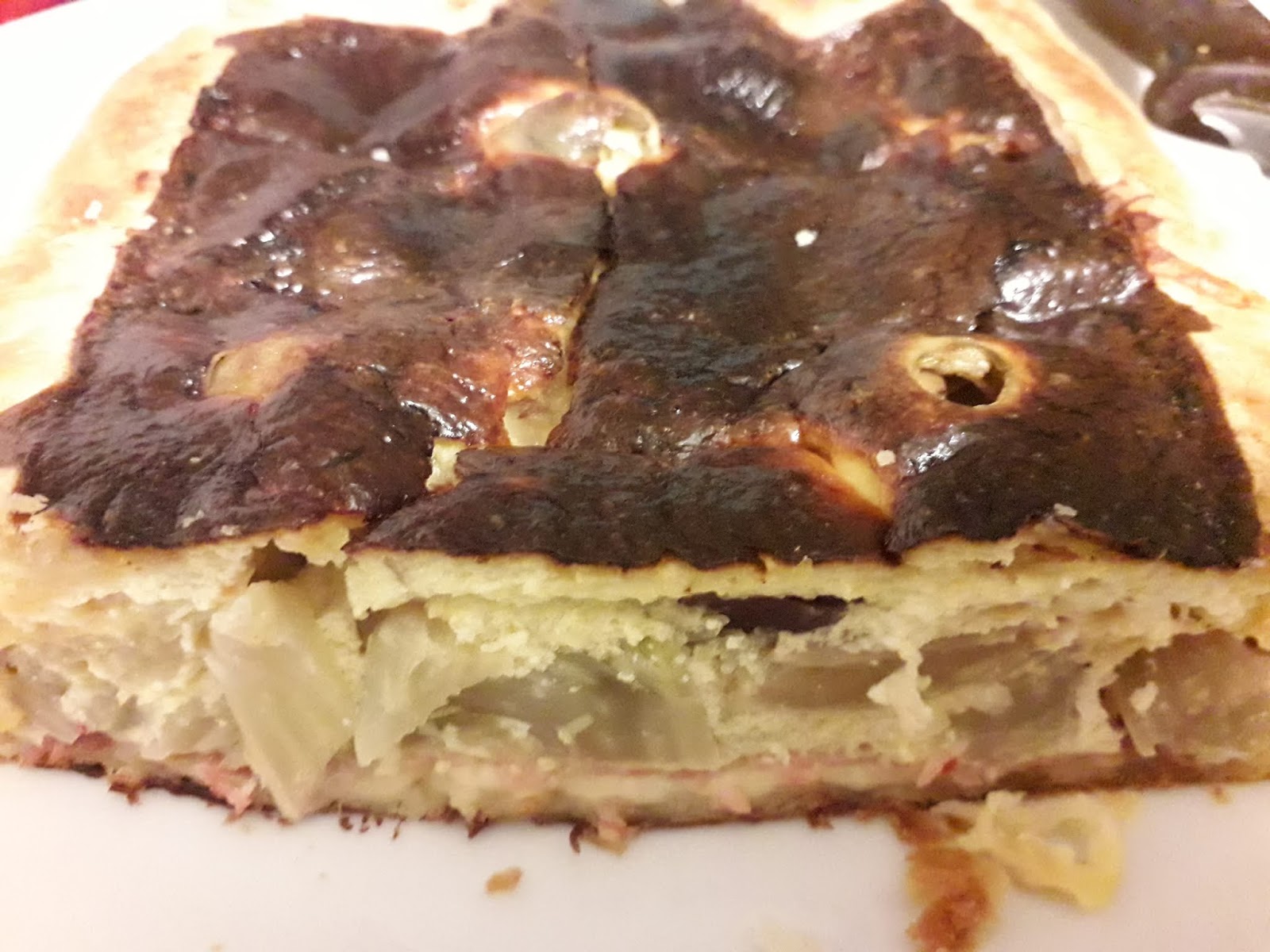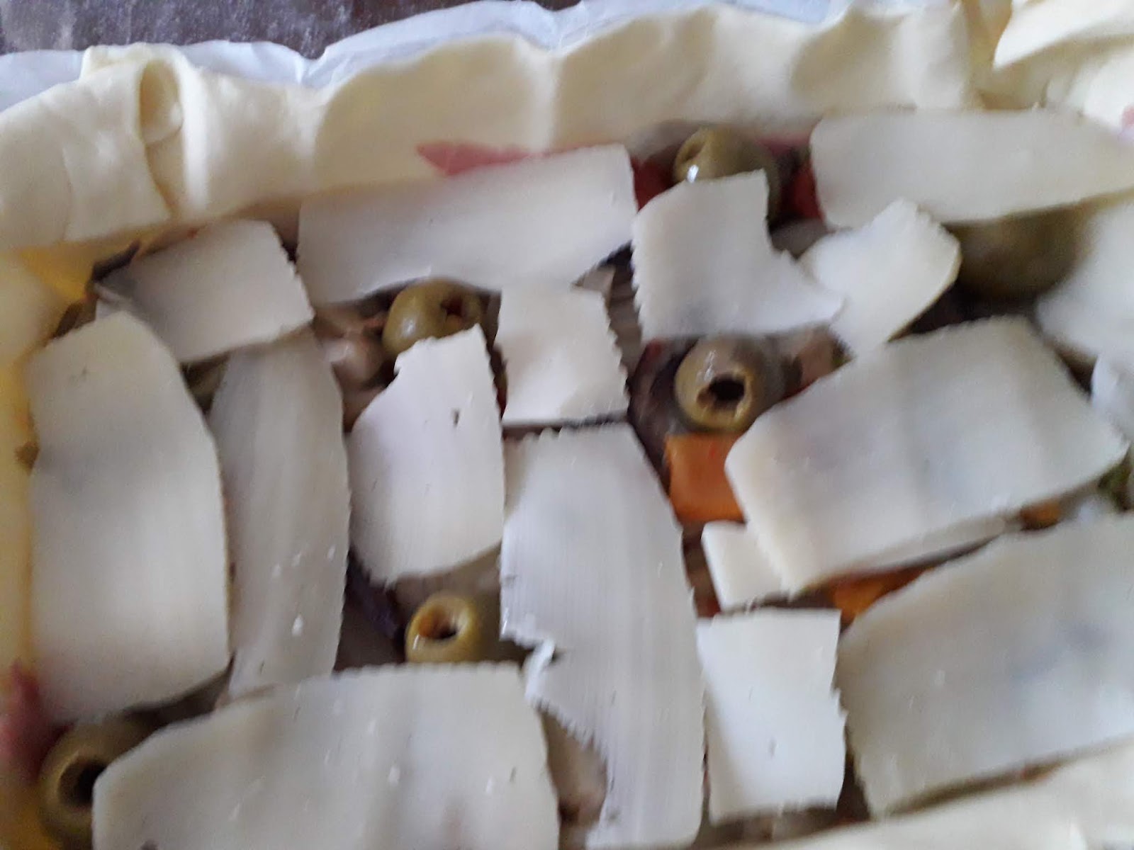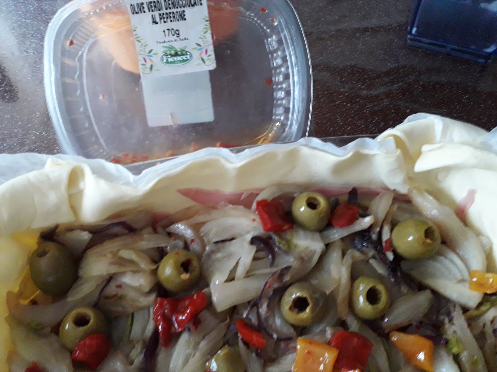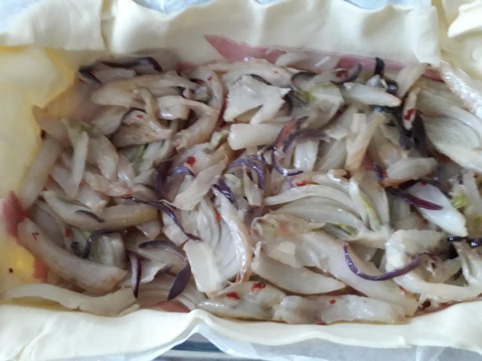 finocchi,olive condite,rigatino a pezzetti ed infine a coprire un miscuglio con panna,latte,sale,