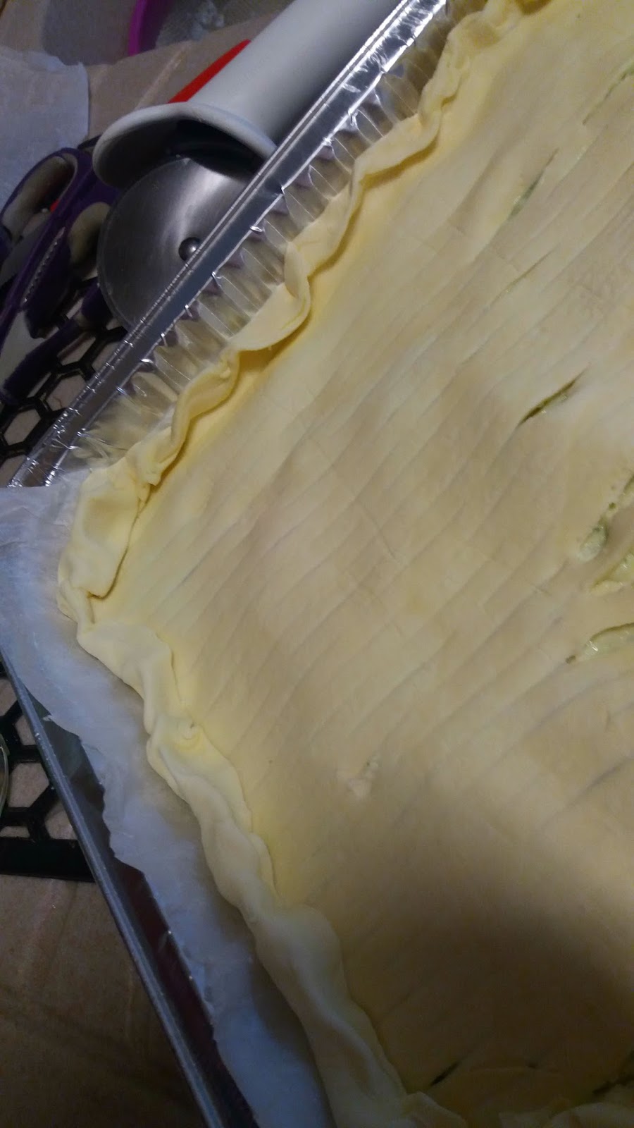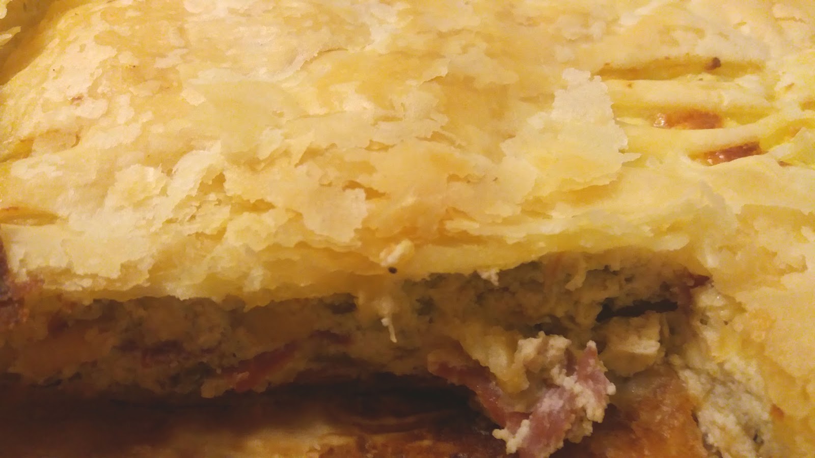 ricoprire il tutto con altra sfoglia,bucarla con una forchetta ed infornare a circa 190° x 20′.