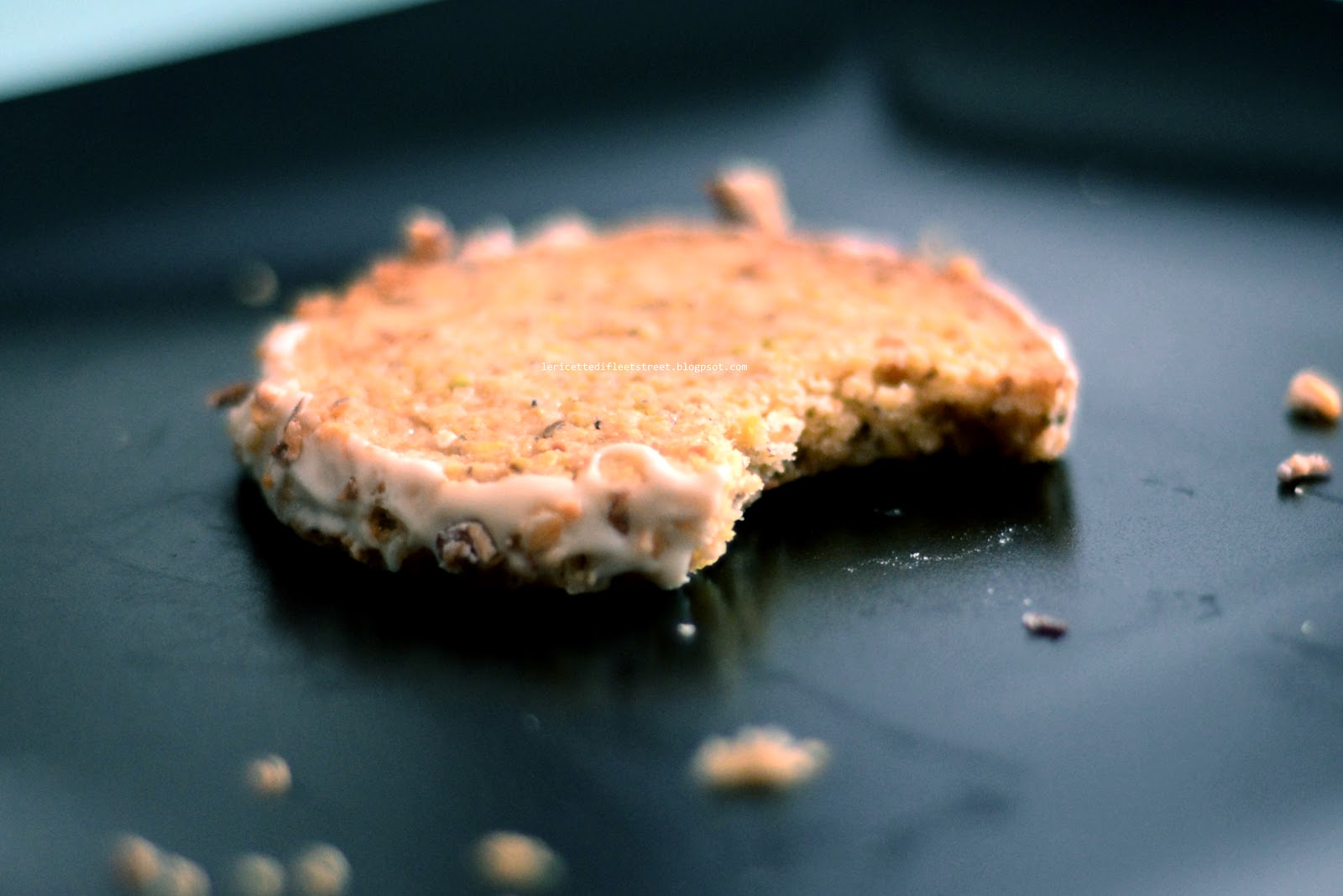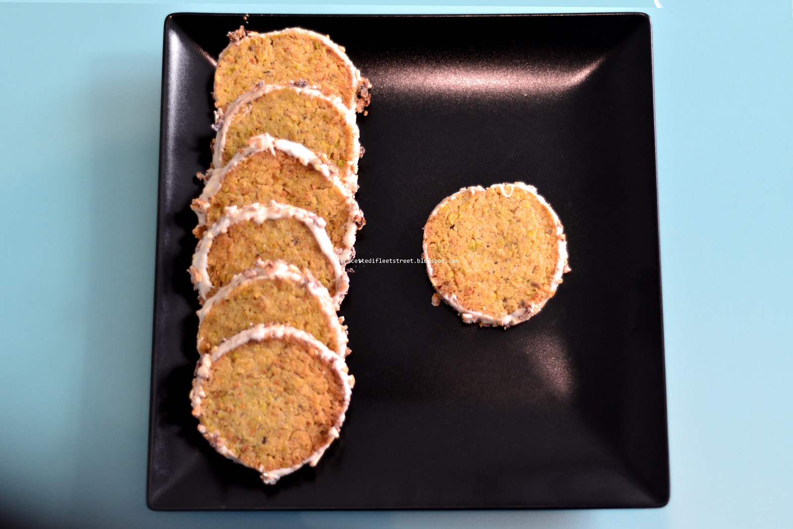 Sablé al pistacchio con cioccolato bianco e briciole di limone essiccato