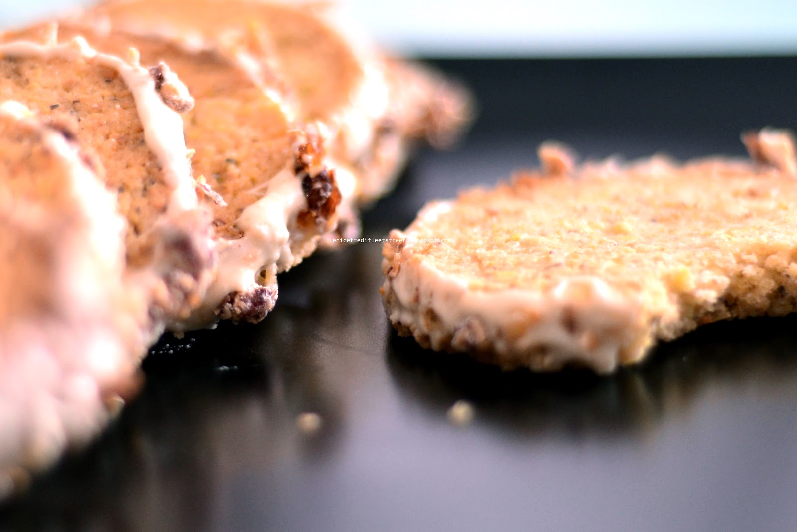 Tagliate quindi dei dischi spessi 6 mm, distanziateli bene sulla leccarda ed infornate per una ventina di minuti. Fate raffreddare senza muoverli.