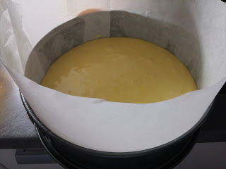 Portare la cioccolata a 32° e versarla tutta sulla torta,