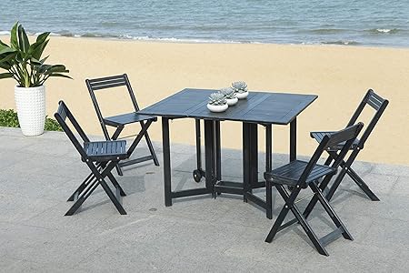 Safavieh Pat7001c Collection Arvin Black Table And 4 Chairs Outdoor Dining Set