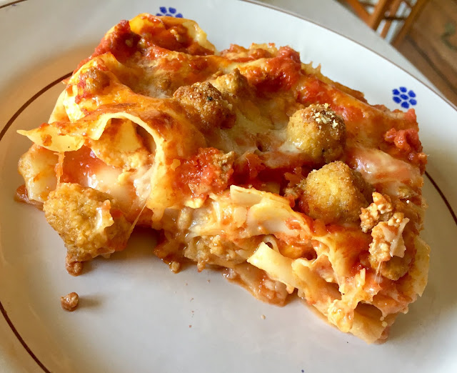 La lasagna calabrese, chiamata in dialetto sagna chijna, è uno dei piatti della tradizione che non può mancare sulla tavola delle feste. Un primo, ma sarebbe meglio dire un piatto unico per la ricchezza degli ingredienti, appetitoso che mi piace preparare anche per ricordare quella che preparava mia mamma. Quanti ricordi in questo piatto! Le polpettine fritte che sparivano dalla ciotola assieme alle fette di soppressata, la corsa seguente per nascondersi e non sentire i rimproveri, il profumo del ragù che cuoceva per ore, come si fa a dimenticare?