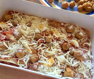 Bagnate il fondo di una teglia con qualche mestolo di ragù e ricopritelo con le sfoglie di pasta. Versate una parte delle polpettine, della mozzarella, dell’uovo sodo e del parmigiano. Cospargete con del ragù e formate un’altro strato partendo dalla pasta. Formate almeno 4 strati e l’ultimo cospargetelo di ragù, parmigiano e polpettine. Coprite la lasagna con della carta forno e fatele cuocere per 30 minuti circa a 200°, gli ultimi 5 minuti togliete la carta e fate gratinare la superficie. Lasciatela riposare prima di servirla.