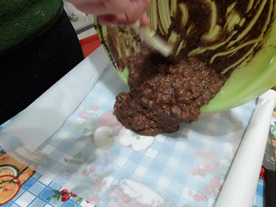 Continuate a mescolare, quando il composto vi risulta addensato bene, potete iniziare a preparare il vostro salame, esso deve stare in frigo per tutta la notte.