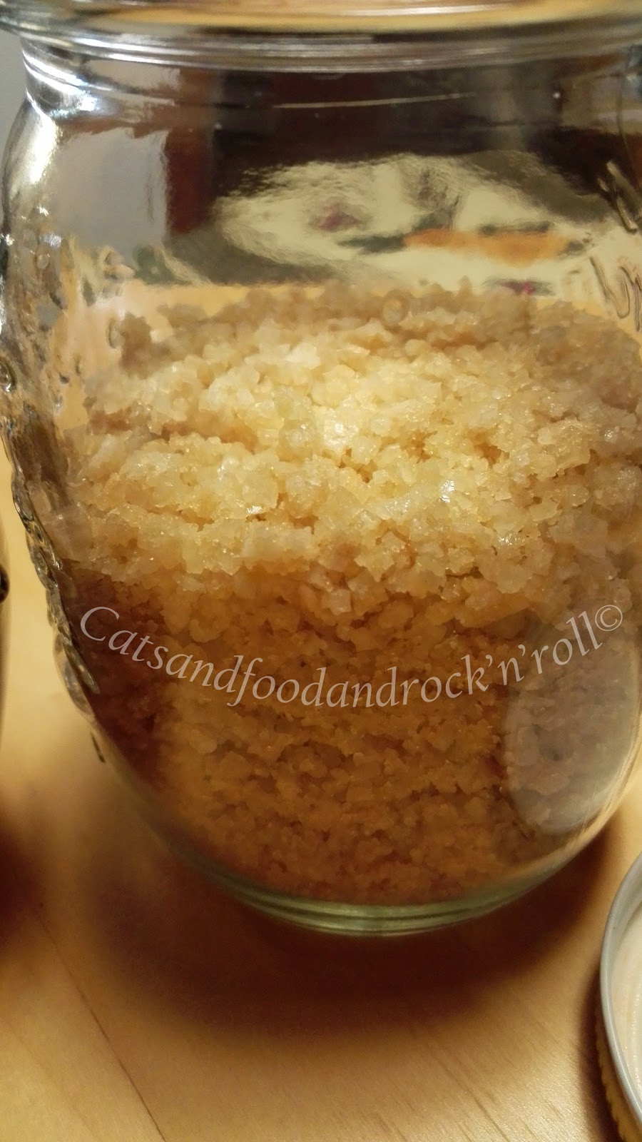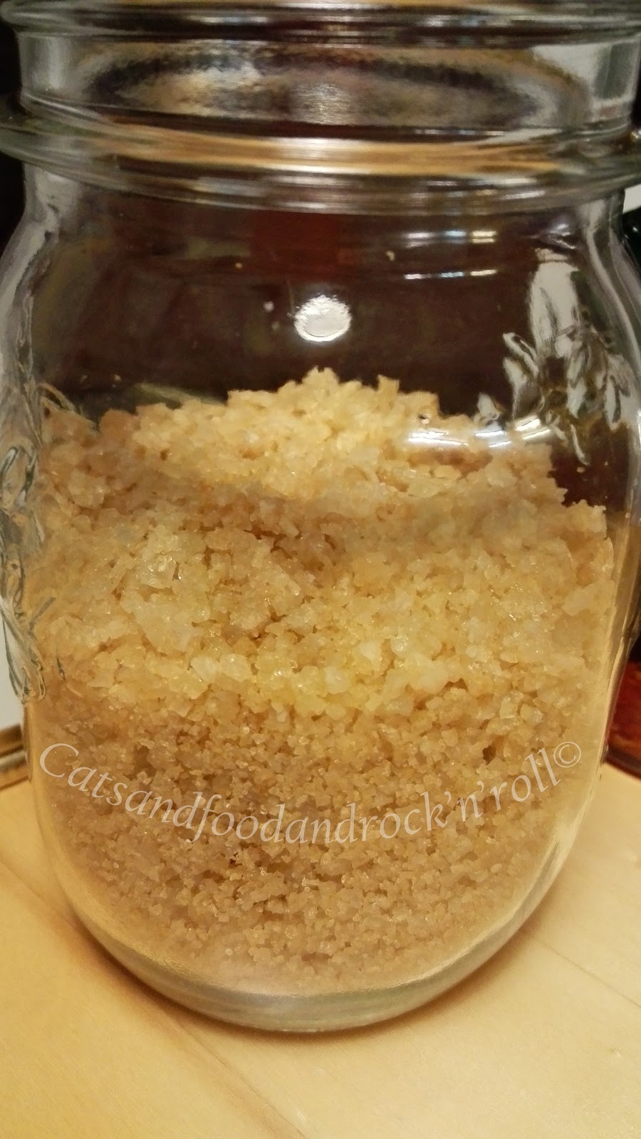 Il liquido ricavato peserà approssimativamente 50 g. Immergerci il sale e lasciarlo ad intridere per un paio di giorni. Il sale prenderà il colore del liquido.