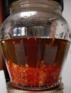 Il trito di peperoncino va staccato dalla cartaforno, sminuzzato con le mani (usare i guanti di lattice!) e quindi o conservato così per essere usato tal quale, oppure allungandoci olio evo, optando se si desidera ottenere una salsina, oppure un vasetto di olio piccante. Io ho scelto di fare quest’ultimo ;-)