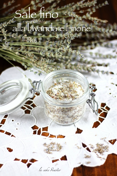 Iniziamo preparando la lavanda per il procedimento ci vorrà qualche giorno (non spaventatevi)…intanto bisogna dire che per fare questa preparazione ci vogliono i fiori di lavanda non trattati…se non avete delle piante vostre, potete andare a comprarne di essiccati nelle erboristerie, procediamo per gradi, allora se avete voi delle piante basterà raccogliere i fiori e farli riposare per un paio di giorni su della carta cucina o da forno in modo da far uscire i microscopici insettini. Fatto questo primo passo ora andiamo a lavare bene bene i fiori che avremo precedentemente staccato dai rametti raccolti, li tamponiamo delicatamente e li teniamo da parte su dei fogli di carta cucina. Ora prepariamo le scorzette di limone. Con l’aiuto di un pelapatate sbucciamo i limoni (mi raccomando non grattare la parte bianca della buccia che è amara), a questo punto le scorze le poniamo su una teglia da forno ricoperta di carta forno e li mettiamo nel forno a 50° per 10/15 minuti per farle essiccare (controllate sempre la cottura perché la temperatura ed i minuti variano da forno a forno…fate delle prove). Tirate fuori dal forno le scorzette seccate e le fate raffreddare su una gratella. Una volta raffreddate le tagliate in piccoli pezzi e le unite insieme ai fiori di lavanda, ormai asciutti, in un mixer e frullate fino alla consistenza desiderata, tenendo da parte qualche fiorellino di lavanda che potrete usare da mettere in cima al barattolo. Ora possiamo iniziare ad assemblare il tutto. Intanto usare barattoli con chiusura ermetica (come quello della foto) sono i migliori per qualità di conservazione. Allora potete alternare un cucchiaio di sale ed un cucchiaio del composto di lavanda e limone fino alla fine del composto. Ed ecco qua un buon sale aromatizzato ottimo per condire carne, insalate e se volete usare il sale grigio bretone è ottimo anche sui dolci. Questa preparazione è anche ottimo come pensierino tra amiche…