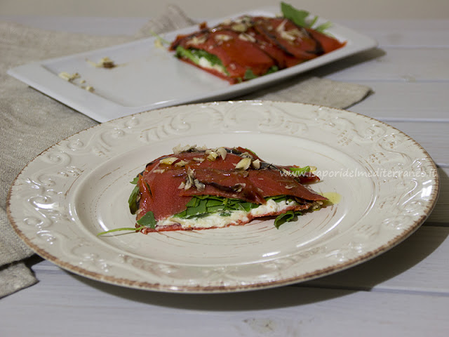 Guarnire il piatto con nocciole tagliate a fette e glassa di aceto balsamico.