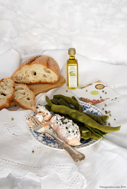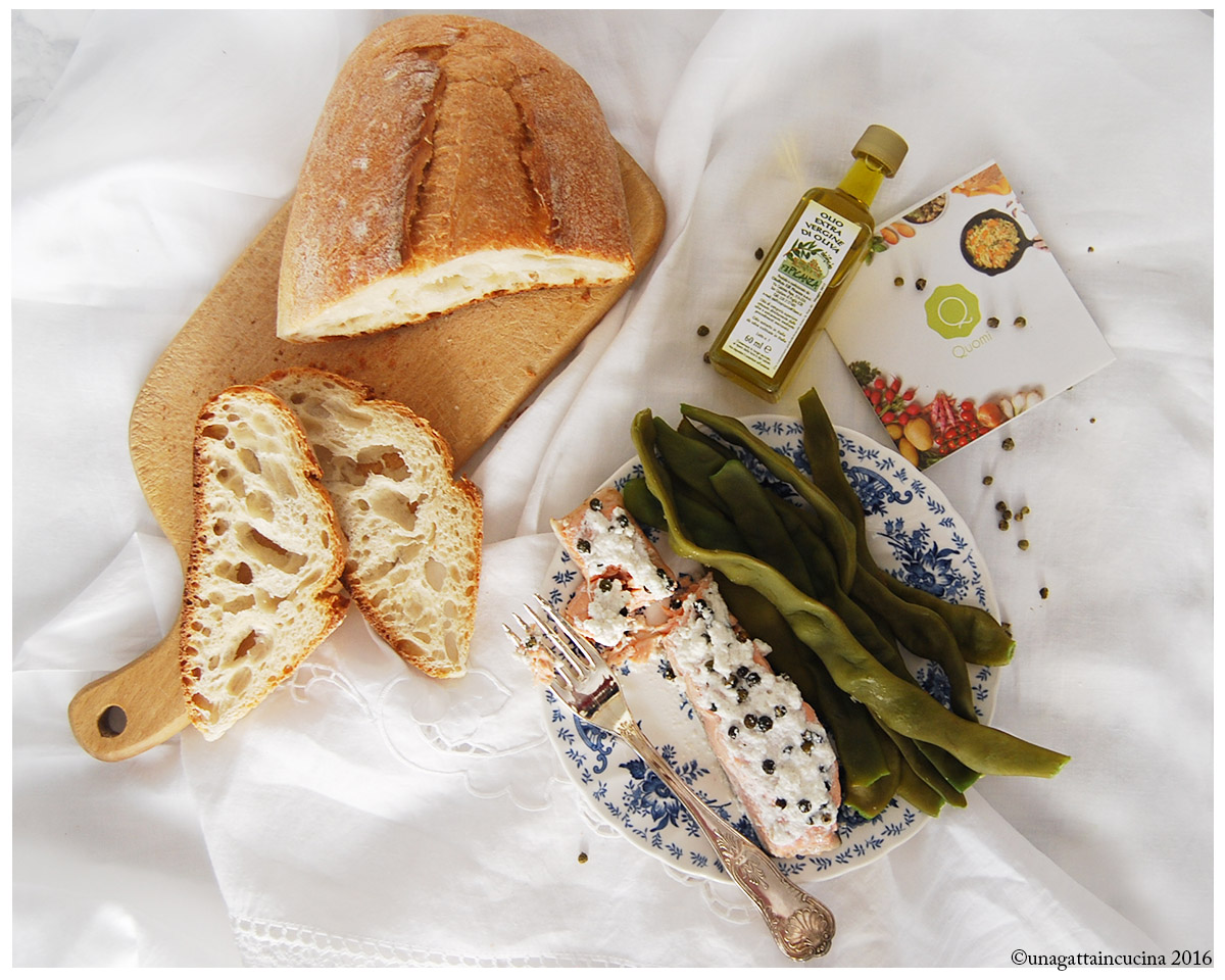 Io ho usufruito di questo servizio settimana scorsa; ho scelto le mie due ricette – gnocchi all’ortica con burro e crudo croccante e salmone con panna e pepe verde con taccole – e oggi ve le presento qui, per un menù completo semplice e veloce!