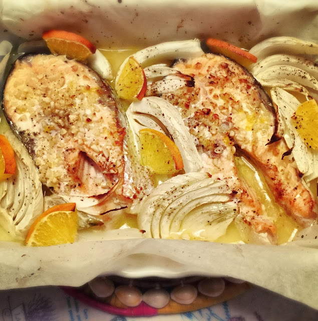 Quando ho preparato questo trancio di salmone, mi sono resa conto che gli ingredienti utilizzati erano tutti presenti nel Mystery Basket, quindi ho pensato di proporla come ricetta fuori gara, sperando possa essere uno spunto anche per voi!