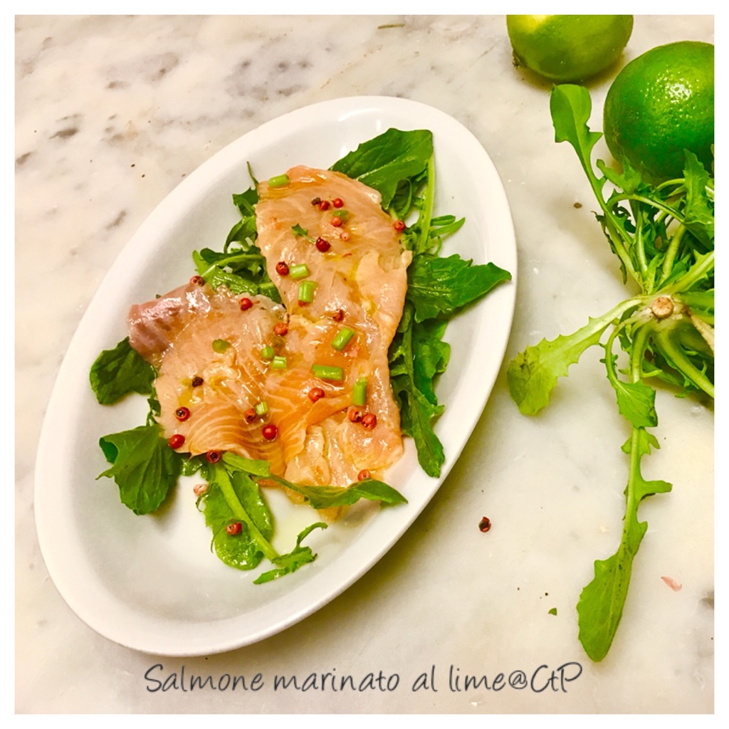 Fate un’emulsione con sale, olio evo, la buccia del lime ed il suo succo, pizzico di pepe, di sale ed una decina di bacche di pepe rosa schiacciato e tritato.