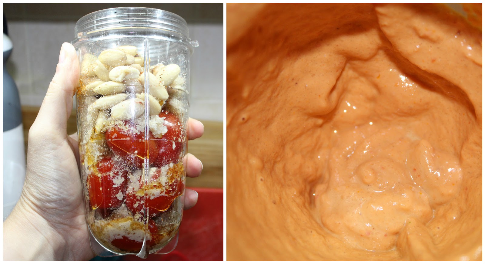 Frullate tutto in un robot da cucina fino a ottenere una crema densa è liscia e lasciate riposare almeno 30 minuti in frigorifero prima di servire.