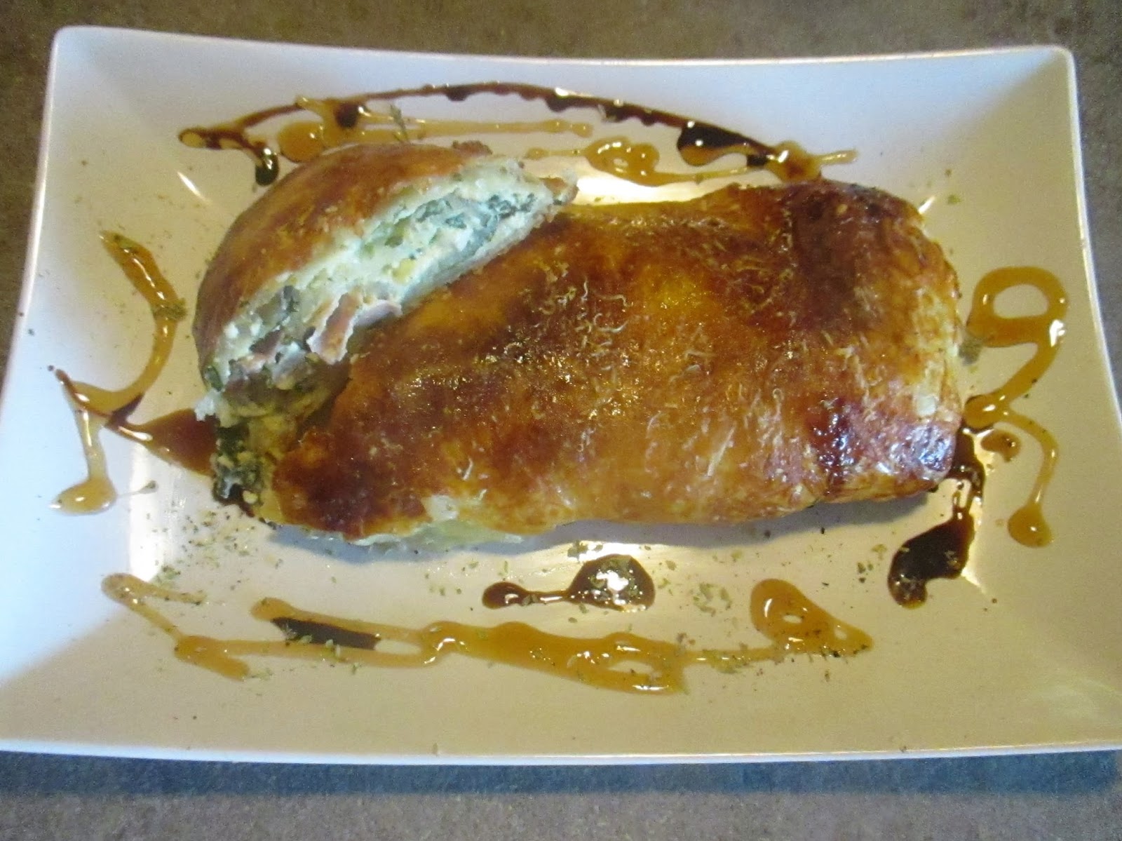 Etaler la pâte sur un sfogia plan. Disposer sur la farce et fermer le rouleau. Cuire au four à 200 degrés pendant 30 minutes. Retirer du four, laisser refroidir et ensuite profiter.