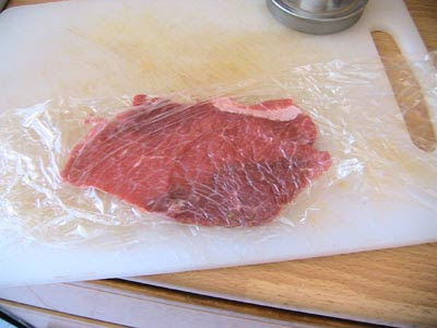 Per prima cosa preparate la carne eliminando i nervetti e il grasso dalle fettine; se preferite potete dare una forma tondeggiante alle fettine tagliando con un coltello i bordi sporgenti. Ponete quindi le fette di carne su un foglio di carta da forno, piegate a metà il foglio per coprire l’intera fettina e battetela con un batticarne