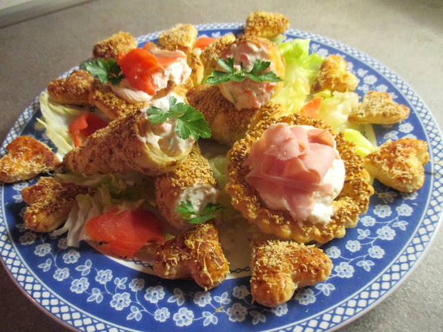 After the interval, stendele the dough and cut with a diamond wheel width of about 3 cm. Roll them on the cones and cylinders pastry (after having buttered !!) and what is left in place it always dies portion of pastry (like tartlets). Brush the surface with beaten egg and milk and sprinkle with sesame seeds. Bake at 200 degrees for about 20/25 minutes.