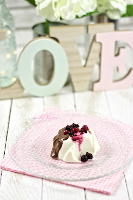 Ci sono due versioni di preparazione di panna cotta, quella in cui si usa la colla di pesce e quella in cui si usa l’agar agar, noi le vedremo entrambe. Iniziamo mettendo a bagno 10 gr di colla di pesce in acqua fredda, nel frattempo scaldare 500 gr di panna fresca ed aggiungere poco alla volta lo zucchero a velo, far amalgamare bene il composto, quindi mescolare mescolare mescolare, strizzare la colla di pesce ed unire al composto (mentre se si fosse usato l’agar agar in polvere si sarebbe aggiunto alla fine senza lavorazione precedente e mescolare per circa 5 minuti). Ora mettere il composto negli stampini (io ho usato quelli in silicone in ogni caso vanno sempre bagnati con acqua fredda), versarne metà in ogni stampo ed aggiungere qualche frutto di bosco ancora surgelato e ricoprire con l’altra parte del composto. Far raffreddare il tutto almeno per un’ora e poi riporre in frigo per almeno 5 ore (io di solito faccio riposare tutta la notte). Poi per la glassa alla nutella, basta solo far sciogliere 6 cucchiaini di nutella a bagnomaria oppure al microonde e versare sopra alla panna cotta. Voilà fatto…Buon San Valentino…