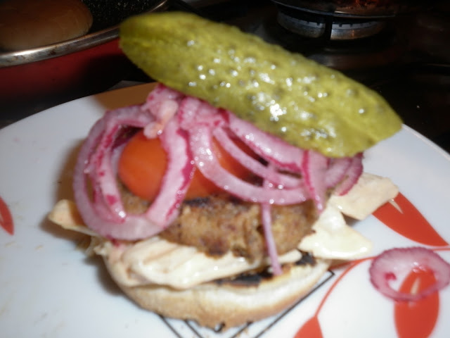 Sto cominciando ad uscire dal web…. E questa è una bella soddisfazione per me. Questo è il terzo anno del mio blog e finalmente posso scoprire se veramente le mie ricettine piacciono, facendole assaporare dal vivo. Oggi è stata una bella esperienza portare alcuni miei piatti in un aperitivo vegano. Anzi direi che più che un aperitivo era un vero e proprio brunch. Ma andiamo con ordine…. Intanto vi presento il risultato finale del burgher prima di essere gustato dalla mia assaggiatrice ufficiale Nicoletta che ieri sera si è prestata a fare da giudice gastronomico…..