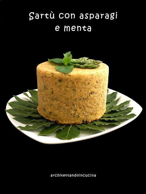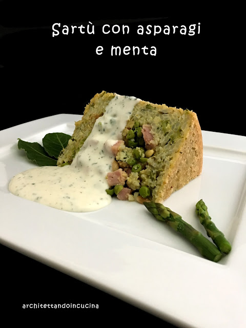 Quando esce il tema dell’MTC, dopo la prima sensazione di sorpresa, perchè non indovino mai il toto ricetta, vengono fuori ogni volta sensazioni diverse. Questa volta non ho formulato neanche ipotesi perchè immaginavo che Marina Bogdanovic, del blog “Mademoiselle Marina”, vincitrice dell’MTC sulla terrina, essendo di origini serbe, avrebbe optato per qualche ricetta del suo paese. E invece, cucina napoletana: il sartù, che è essenzialmente un timballo (cioè una preparazione che prende il nome dal proprio stampo) di riso, ripieno di ogni ben di Dio. Così dopo la sorpresa, questa volta il primo pensiero è stato: “Oddio! Questo è un piatto che mi farà ingrassare solo a guardarlo”. Il sartù è un piatto sontuoso, regale, ricchissimo. Eppure lo dovrò fare e quindi anche mangiare: così ho cominciato a ragionare in termini di abbattimento delle calorie: la mia personalissima sfida sarebbe stata farlo buono e leggero. Quindi verdure e allora: “Lo faccio vegetariano!” Con asparagi e piselli, polpettine di ricotta (non le friggo, le faccio al forno), aggiungo 2 pinoli per dare una nota croccante e voilà. Fatto!