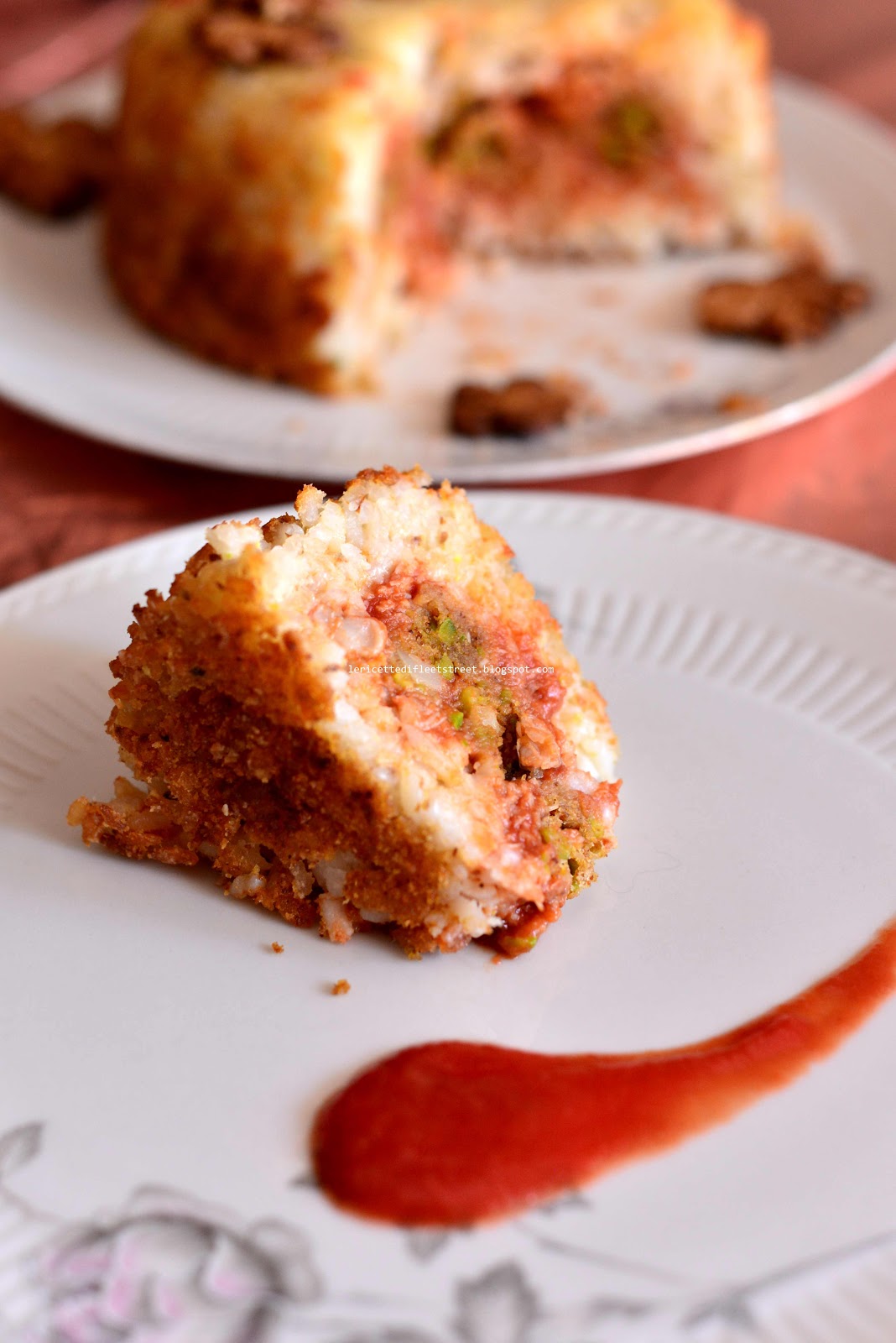 Preparate quindi il sartù imburrando bene uno stampo e cospargendolo di pangrattato. Con le mani umide, prelevate del riso e cominciate a foderare i bordi. Aggiungete il ripieno di ragù di granchio e polpettine, compattate nuovamente del riso per richiudere bene. Cospargete di pangrattato e fiocchi di burro, infornate a 180°C per una ventina di minuti (o fino a che i bordi si staccano dallo stampo).