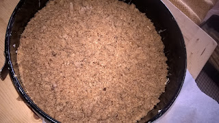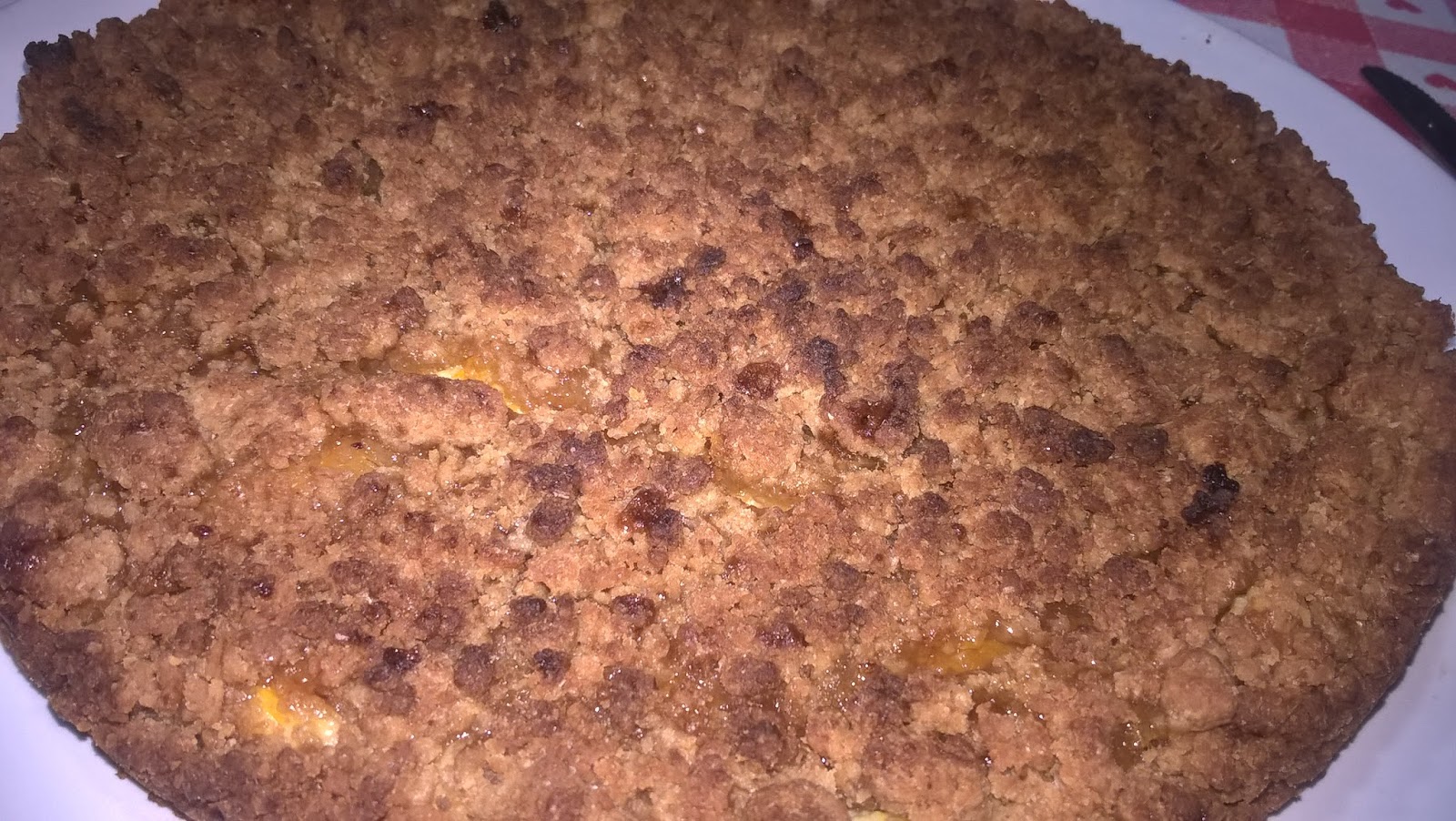 Sistemare le briciole di frolla in modo da ricoprire tutta la superficie. Infornare a 180° per 30 minuti circa. Si può gustare tiepida o fredda completandola con una spolverata di zucchero a velo. Io ho preferito di no.