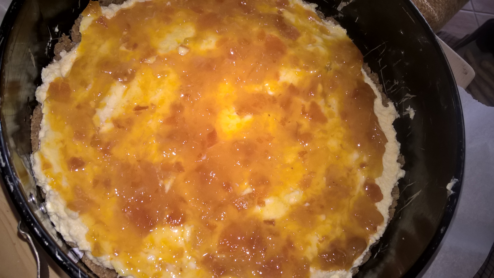 Versare la crema di ricotta sul fondo e completare con della marmellata d’arancia.