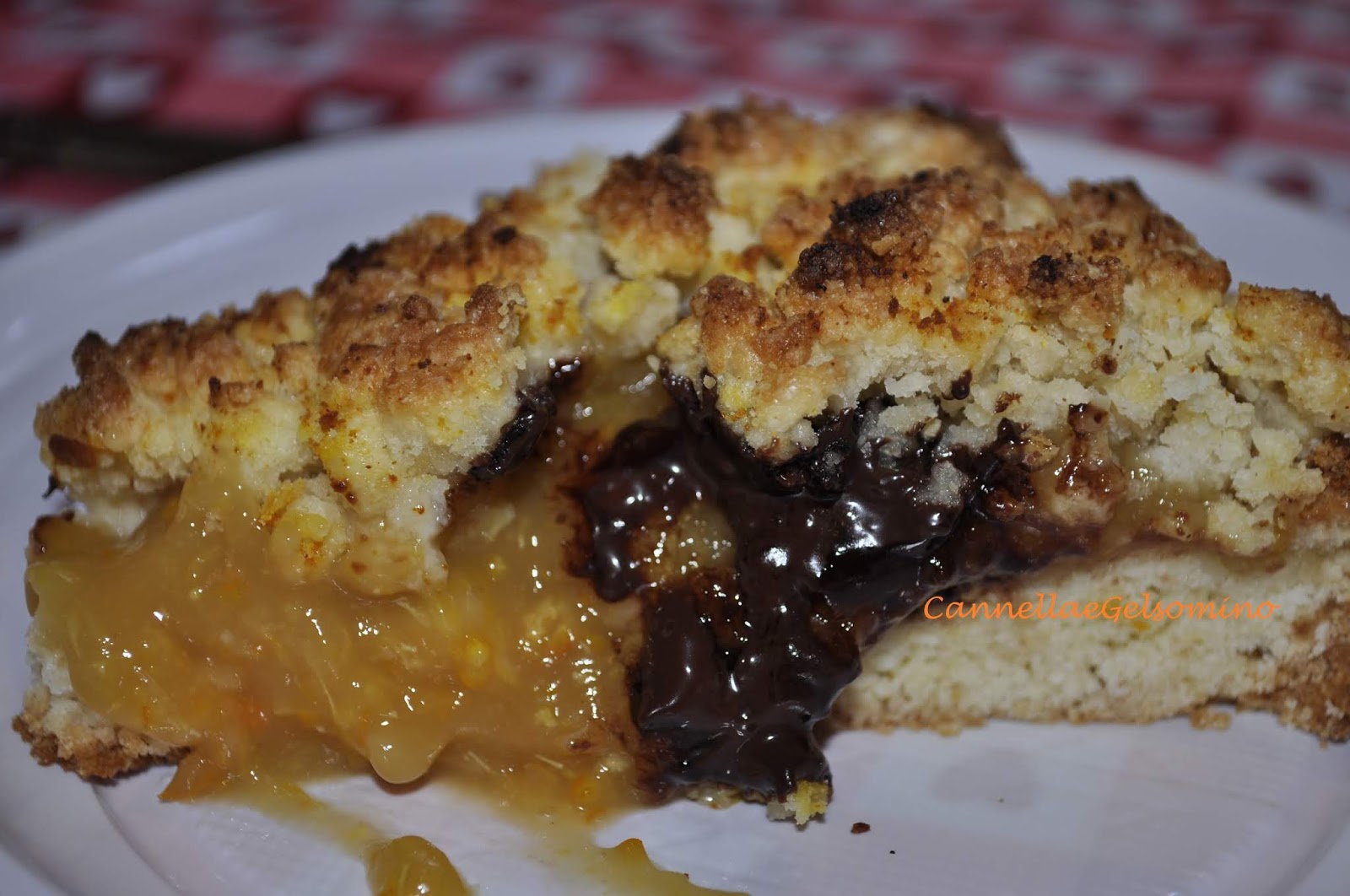 Ricoprite con le briciole di frolla e completate con polvere d’arancia. Infornate a 180° per 30 minuti.