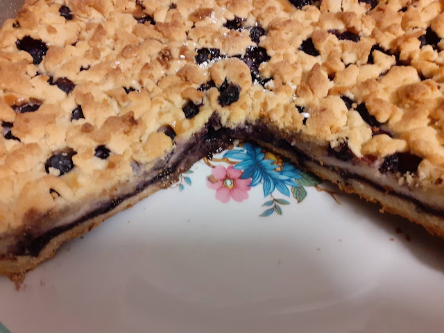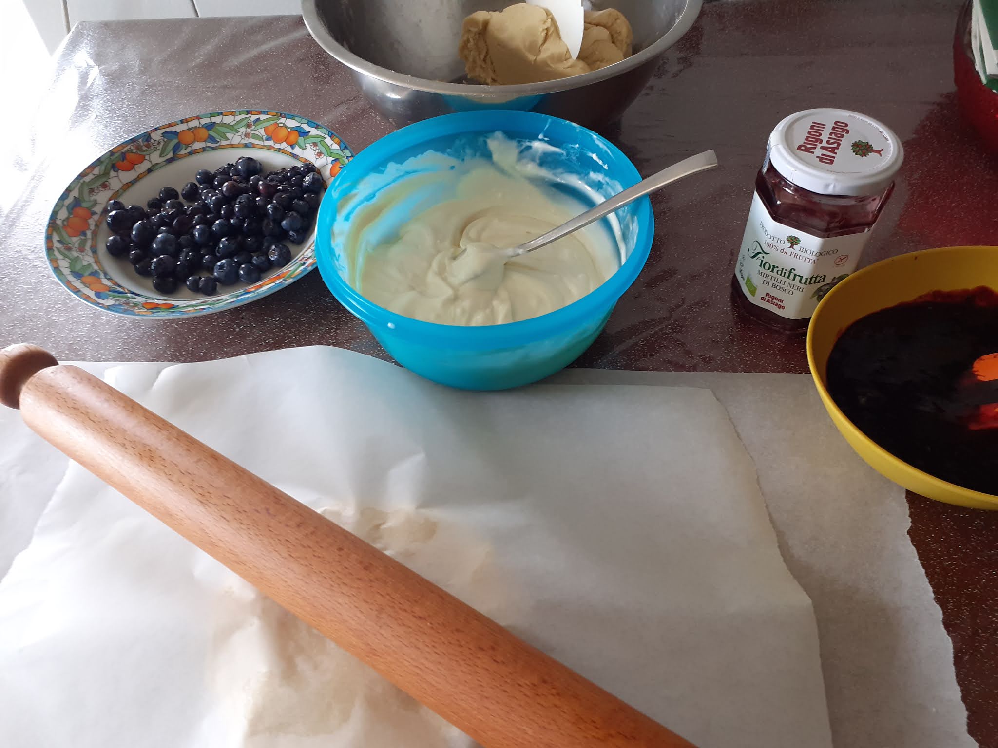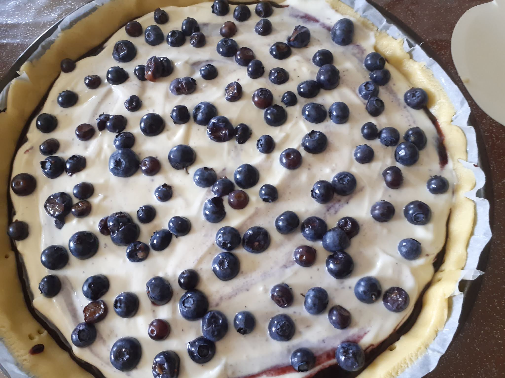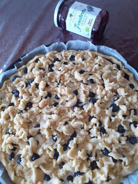 uno strato di fiordifrutta,poi la crema ed infine i mirtilli freschi,ricoprendo il tutto con