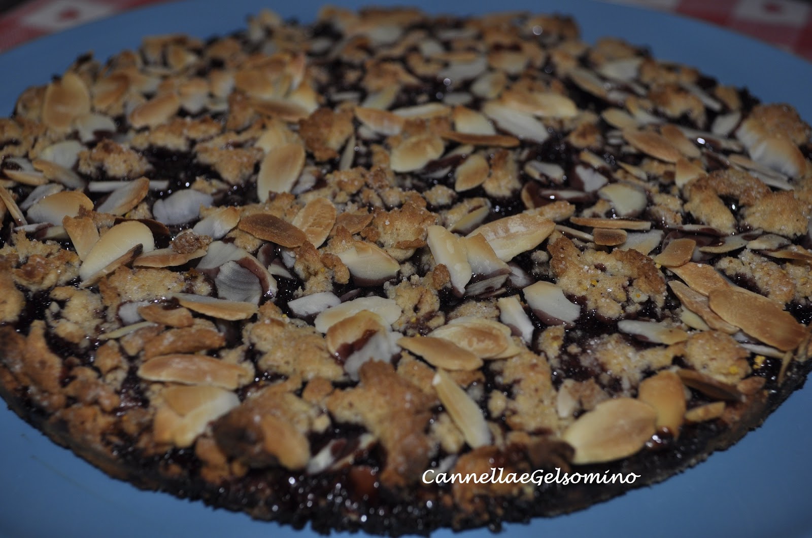 Finite con una manciata di mandorle a lamelle. Infornate per 30 minuti a 180° facendo in modo che la frolla e le mandorle siano ben tostate.